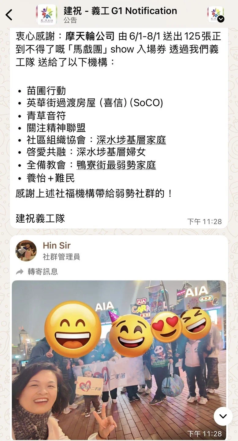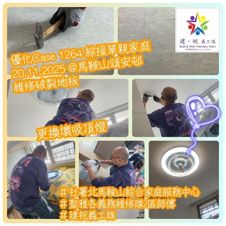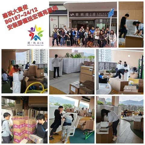 「建祝義工隊」感謝我們合作夥伴「足印義工隊」、「聖雅各維修隊」、「DIY 義工隊」、「社職」、「天乙慈善」、「教關」、「社區組織協會」、「青草音符」、「苗圃行動」、「Mercy HK」及過千義工默默付出!
