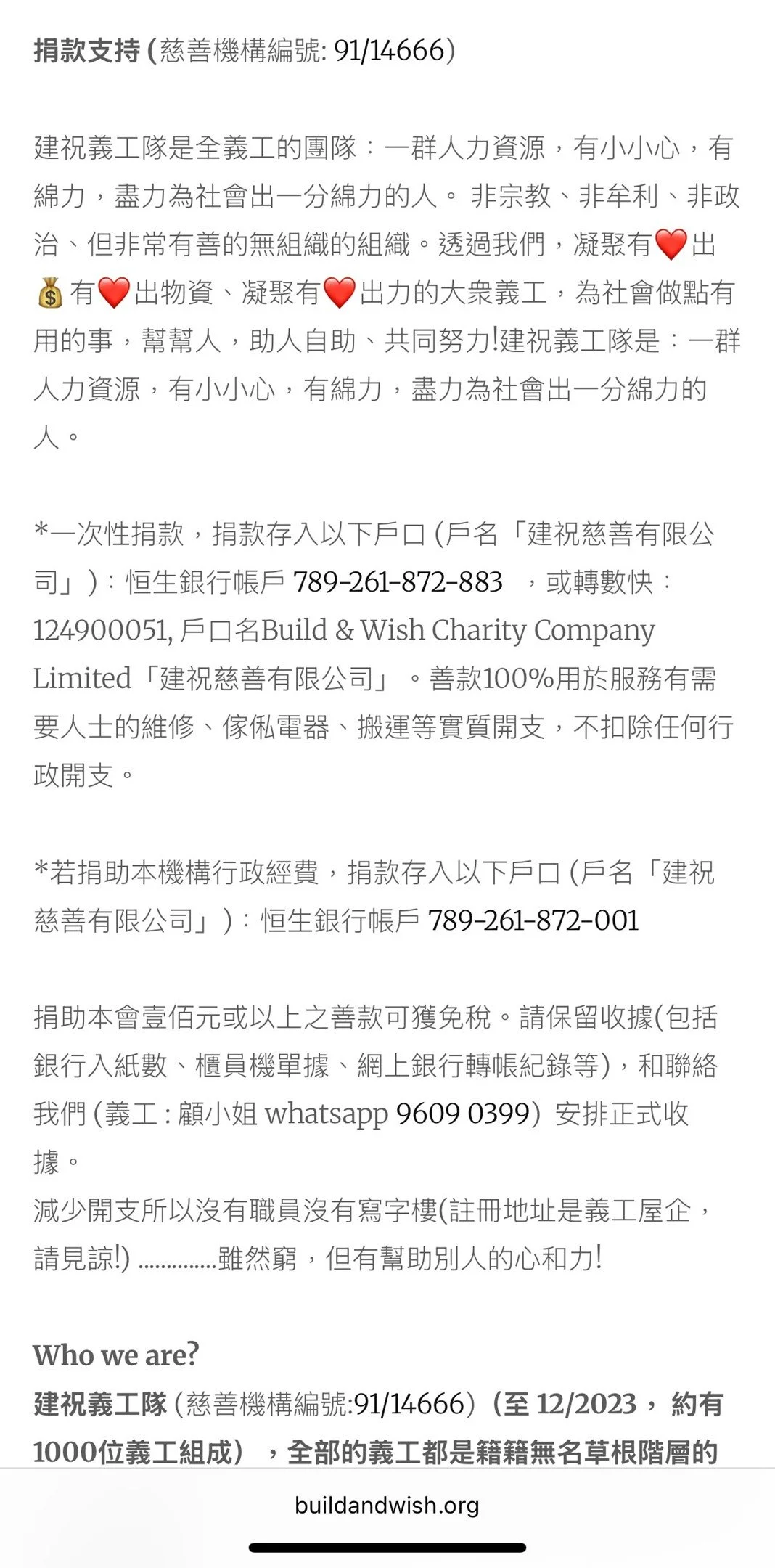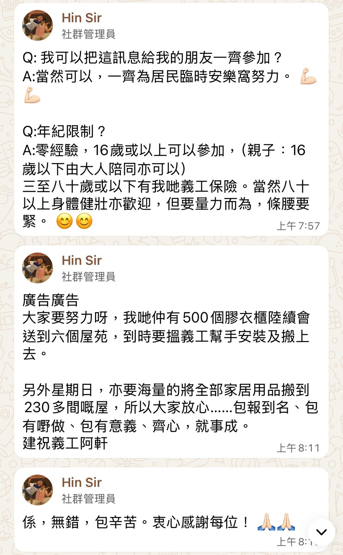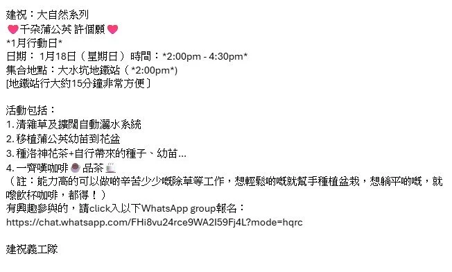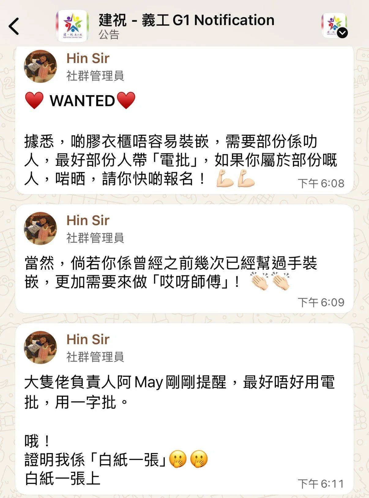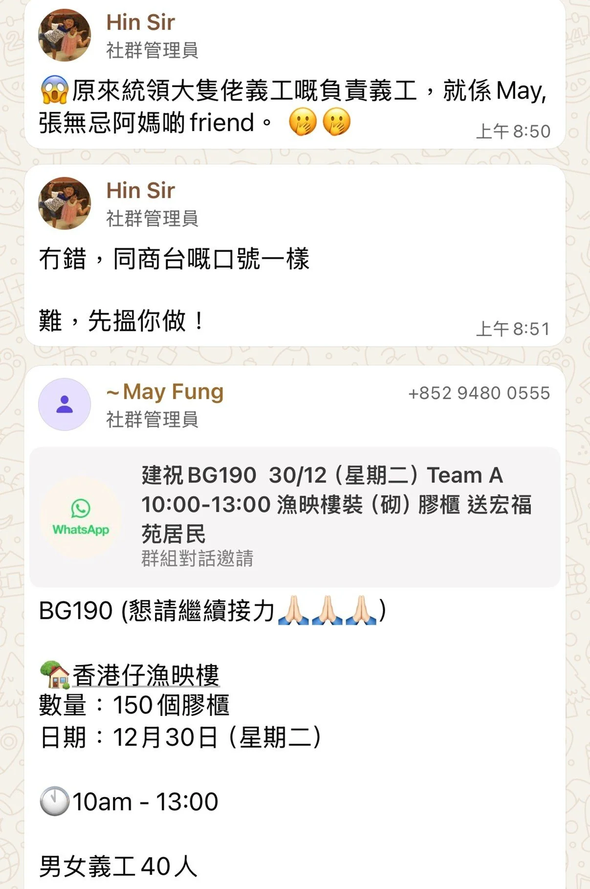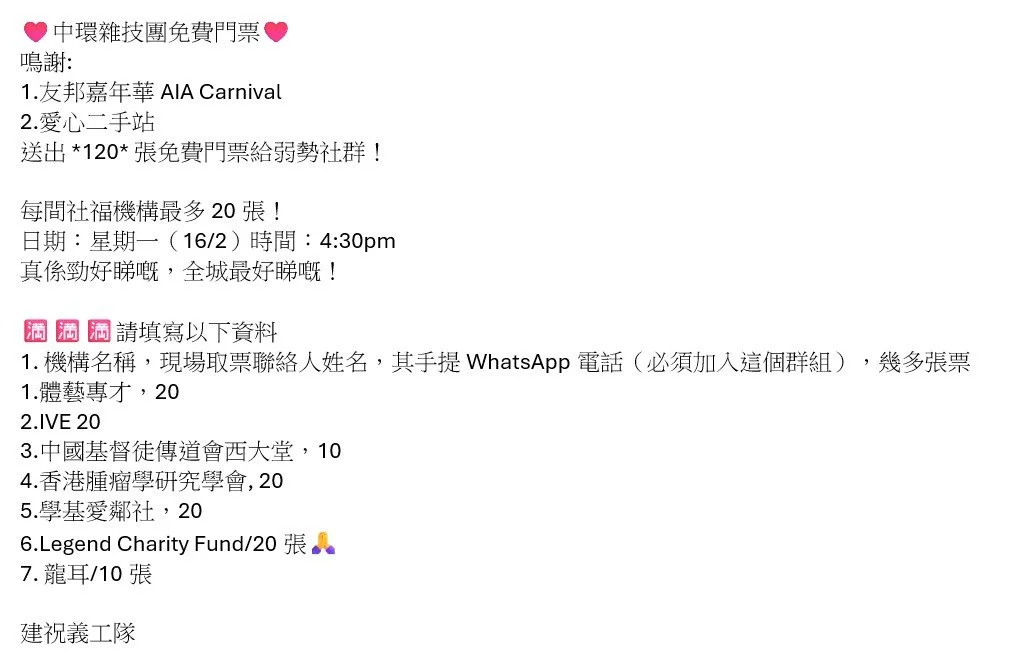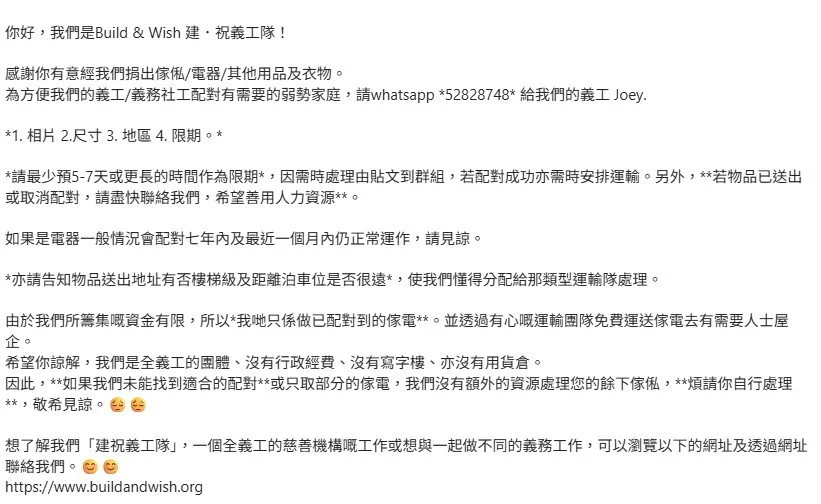 D. 如有查詢,請whatsapp 義工Jan:96090399(whatsapp only)