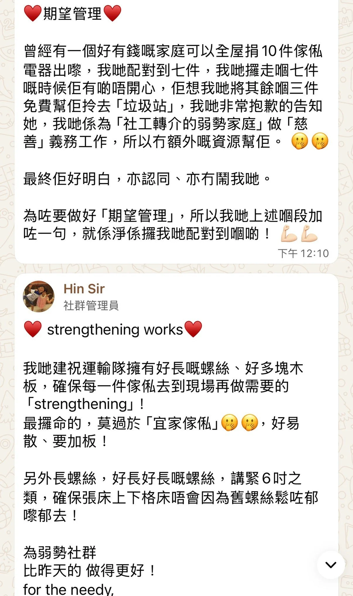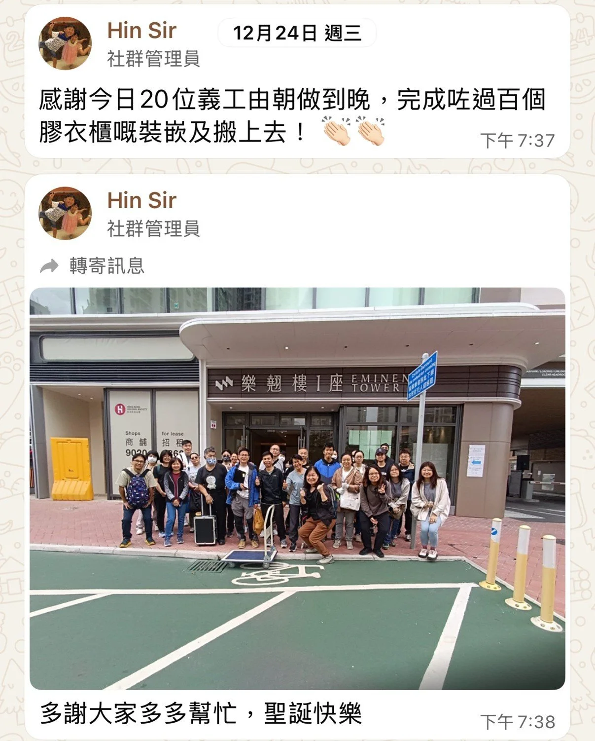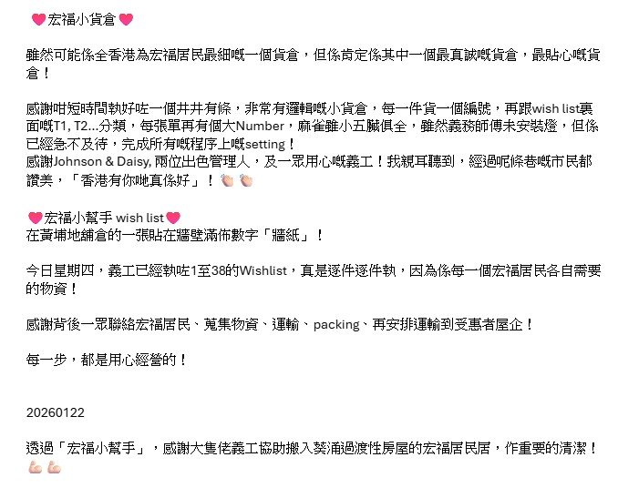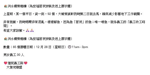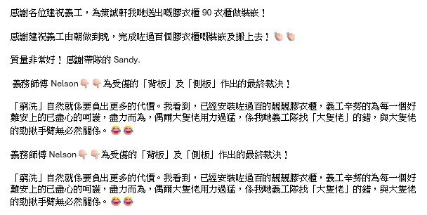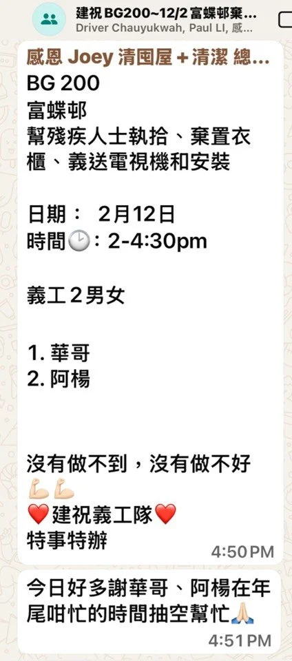 ♥️義工的努力 停不了♥️連同我哋幾位嘅義工,齊心為「漁映樓」「宏福居民」最後搬搬抬抬,final check list 嘅任務! 另外,「觀塘大廈」我哋義工協助繼續安裝我哋送出的幾十個膠衣櫃!💪🏻💪🏻