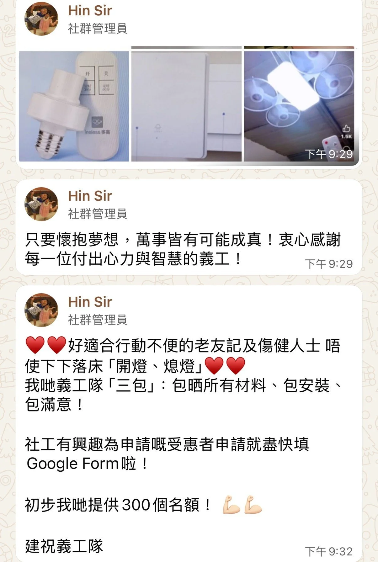 我哋義工隊「三包」:包晒所有材料、包安裝、包滿意!