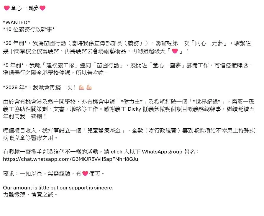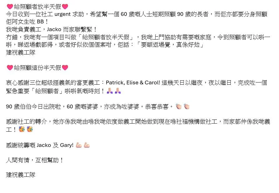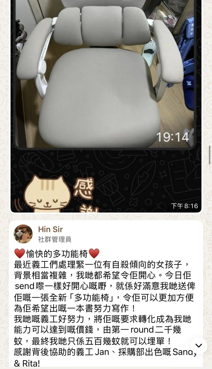 [搵日要扚起第二個心肝先寫到處理一個慈善機構內務十幾個崗位的嘅義工名單先]幸運的有一衆不同崗位的義工一齊撐住,令到我哋 「雖但求其,務求幫到人就最重要!」
