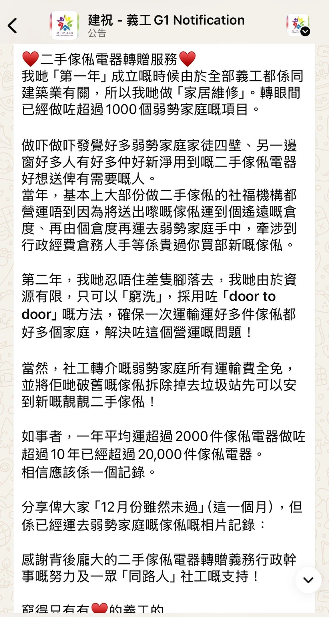 我哋義工隊將會喺本星期♥即接送到♥「社福機構/社福中心/老人中心」