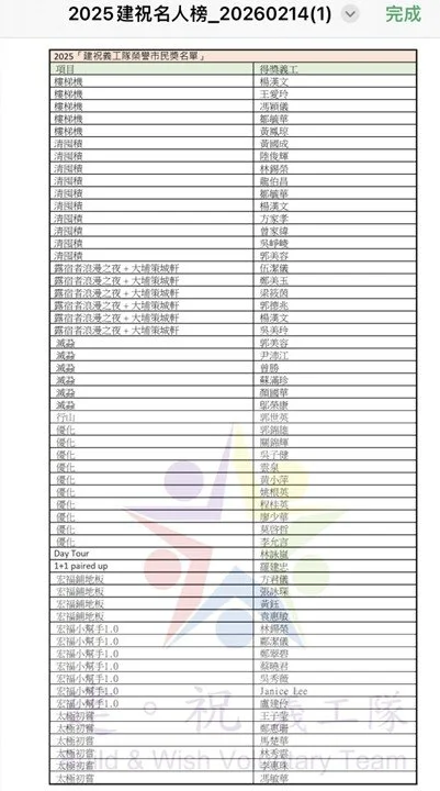 至2025年6月30日,建祝義工隊服務主要項目包括:-