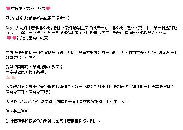 有啲項目已經完成歷史任務,例如 偉大嘅「唐樓搓手液計劃」、「點心紙計劃」、「維修班」、「英文班」….