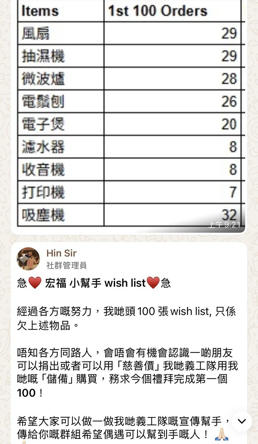 33. 慈善100強Coupon: 邀請商舖提供優惠給社工等轉介的弱勢社群! 這個週末開始邀請商舖參加。感恩已有不同店舖同意,包括百貨用品、眼鏡舖、五金舖、美術興趣班、醫療商舖…還有租樓給市民的大公司會allocate 單位給這個項目!感動。