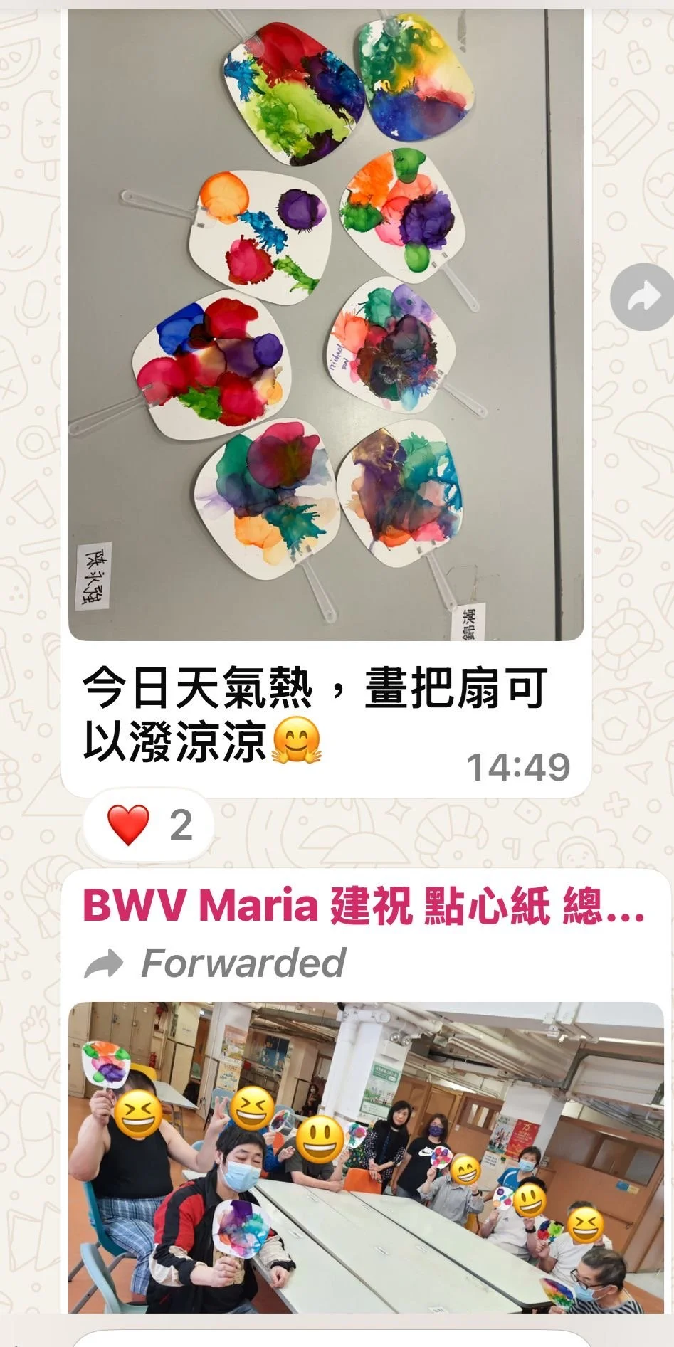 43. 「院舍樂在其中計劃」之 「夾滿fun! 」(夾公仔機)、魔術甲綜合表演、藝術活動包括羊毛畫酒精墨水畫,禪繞畫、太極初嘗班, 1+1 paired up 小探訪小禮物計劃