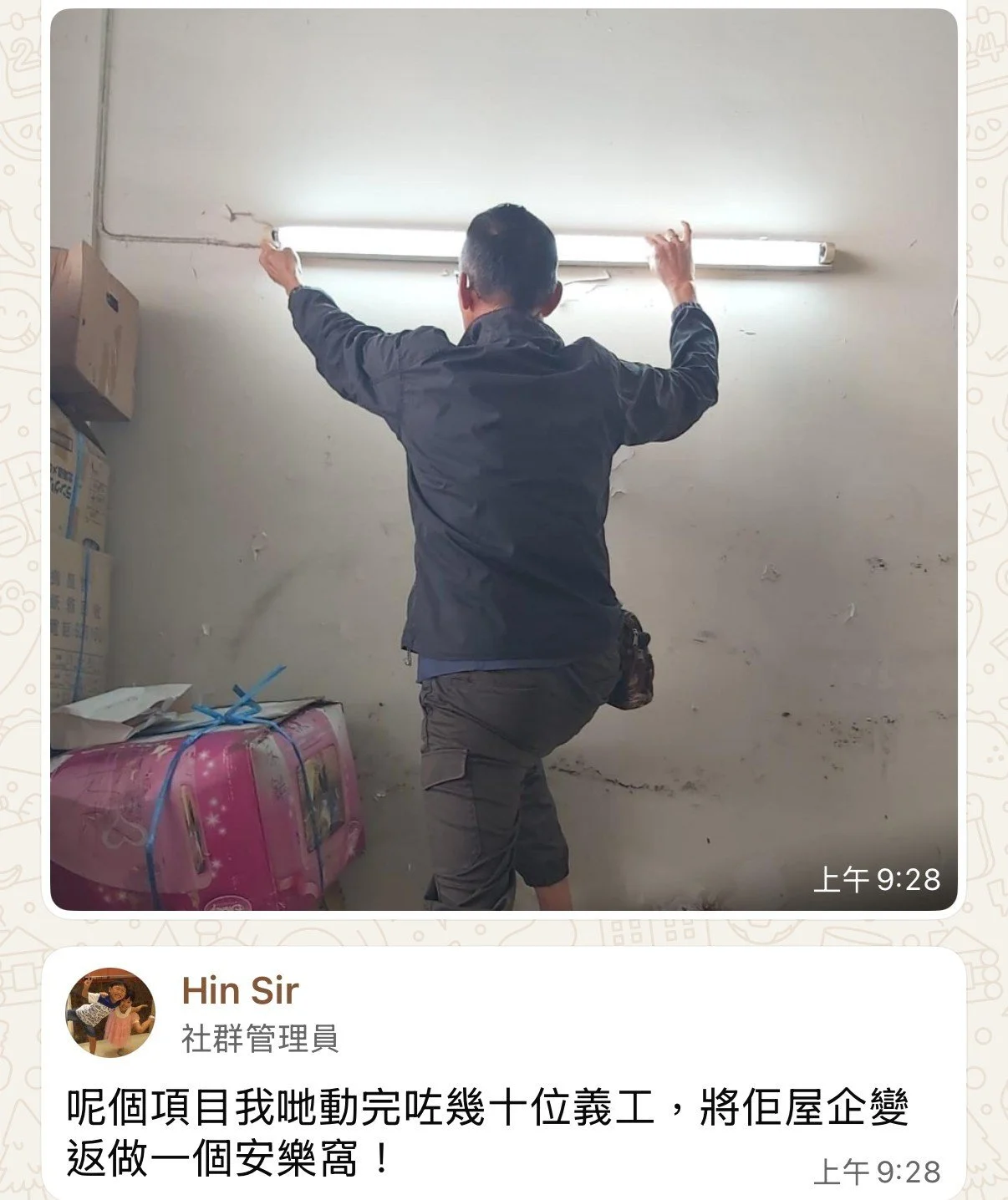 ♥️清囤積屋♥️感謝幾位義工,昨天回訪在大角咀一位囤積個案老伯伯,並幫佢安裝新嘅燈同埋二手電視。