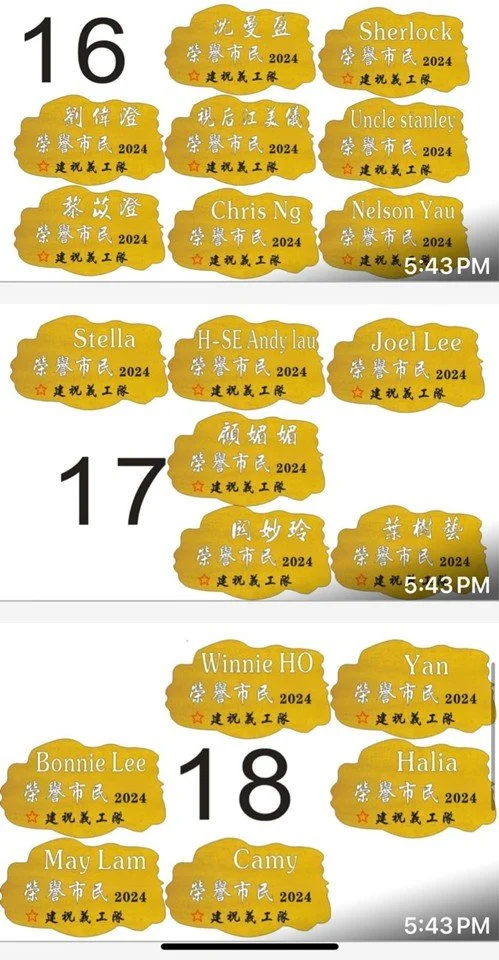 衷心感謝今天領軍的雲姐及邱師傅,在雷雨底下,將長洲小學及幼稚園小朋友老師校長130塊酒精墨水畫做出來的亞加力膠片,砌成了「長洲家平安」的feature wall, 位置喺邊?就喺條大街轉入另一條大街嘅非常繁忙的街道上。