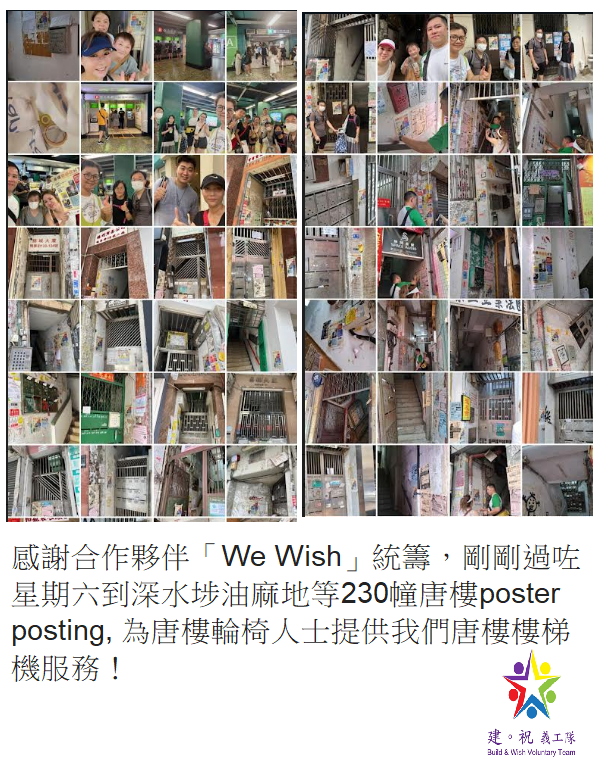 37. 建祝義工隊唐樓樓梯機計劃:為全港九新界唐樓輪椅人士免費由我哋合資格義務樓梯機操作員,與他們一起落樓,逛逛街,享受美好的一天!